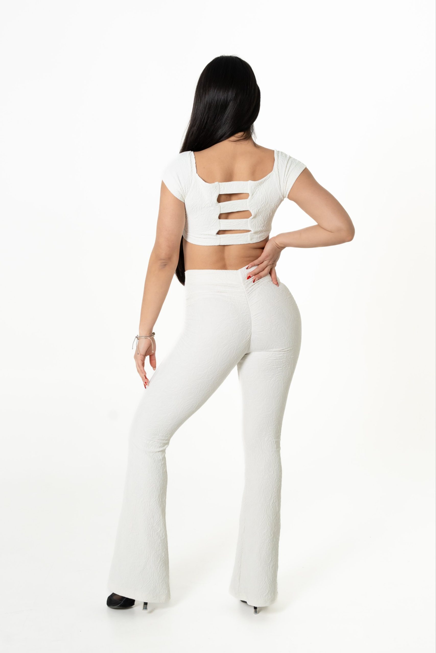 Este conjunto está confeccionado con una tela especial de tacto suave y textura gruesa, que se ajusta delicadamente al cuerpo proporcionando comodidad y un excelente soporte. Su efecto moldeador ayuda a disimular imperfecciones como la celulitis, realzando la silueta de forma natural.