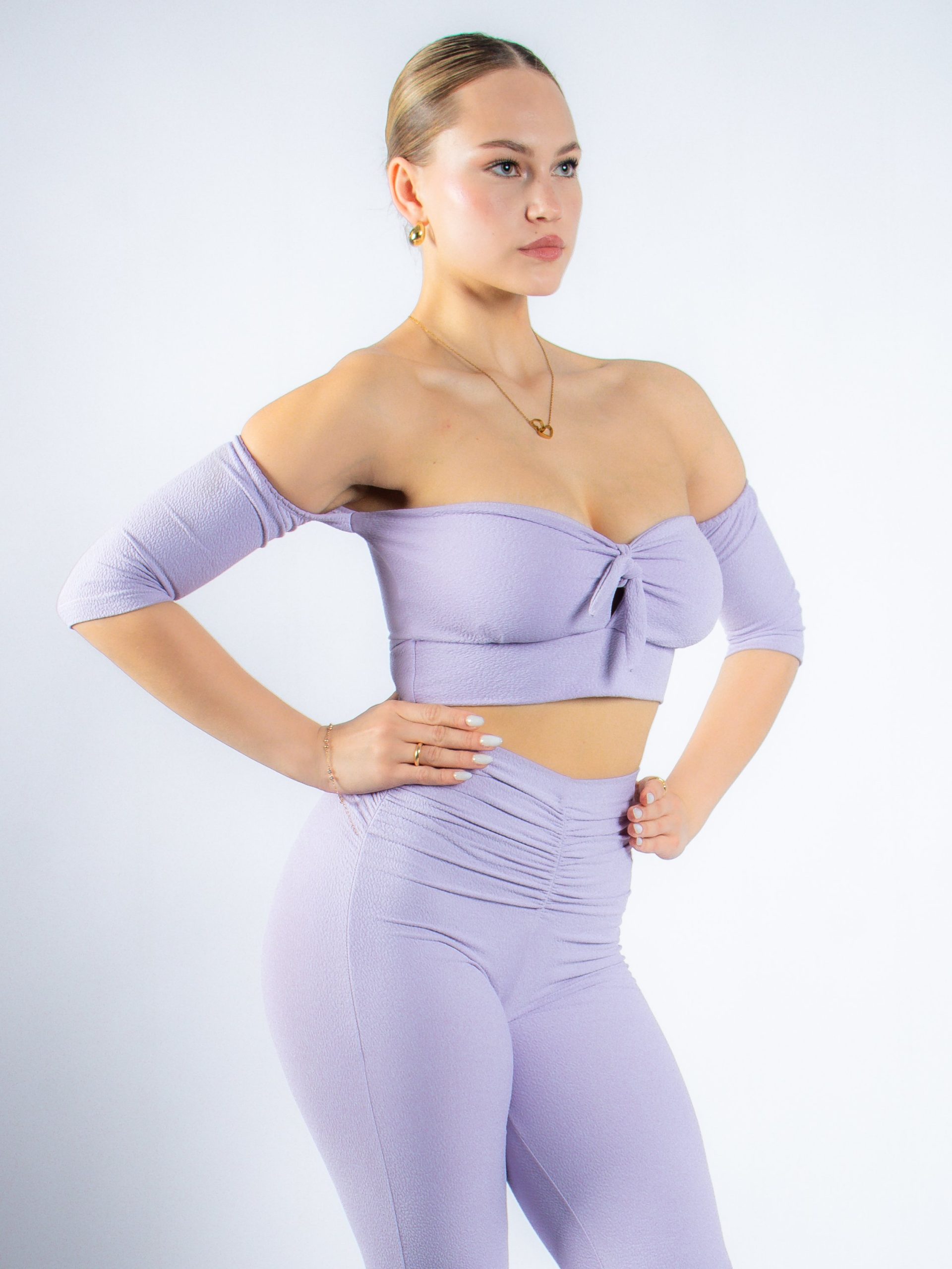 Diseño off shoulder con una manga larga