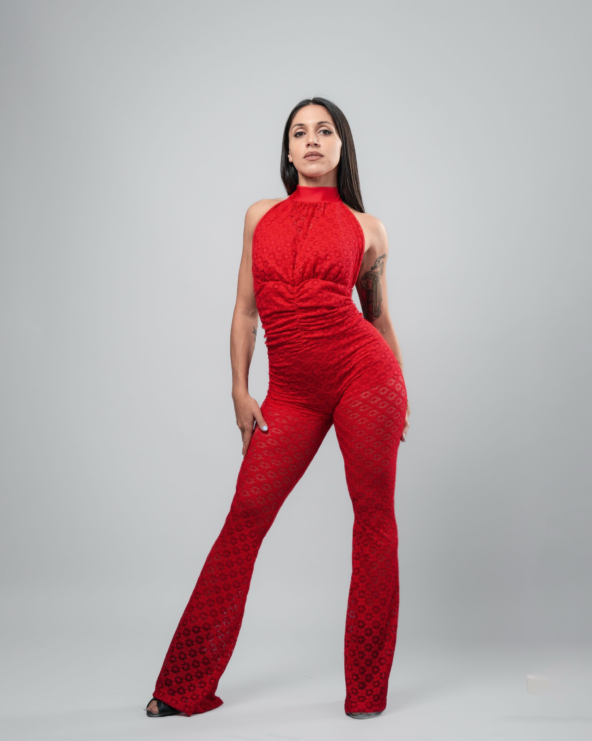 Este outfit rojo de bachata sensual está diseñado para ofrecer comodidad, movilidad y un flow bachatero irresistible en cada movimiento.