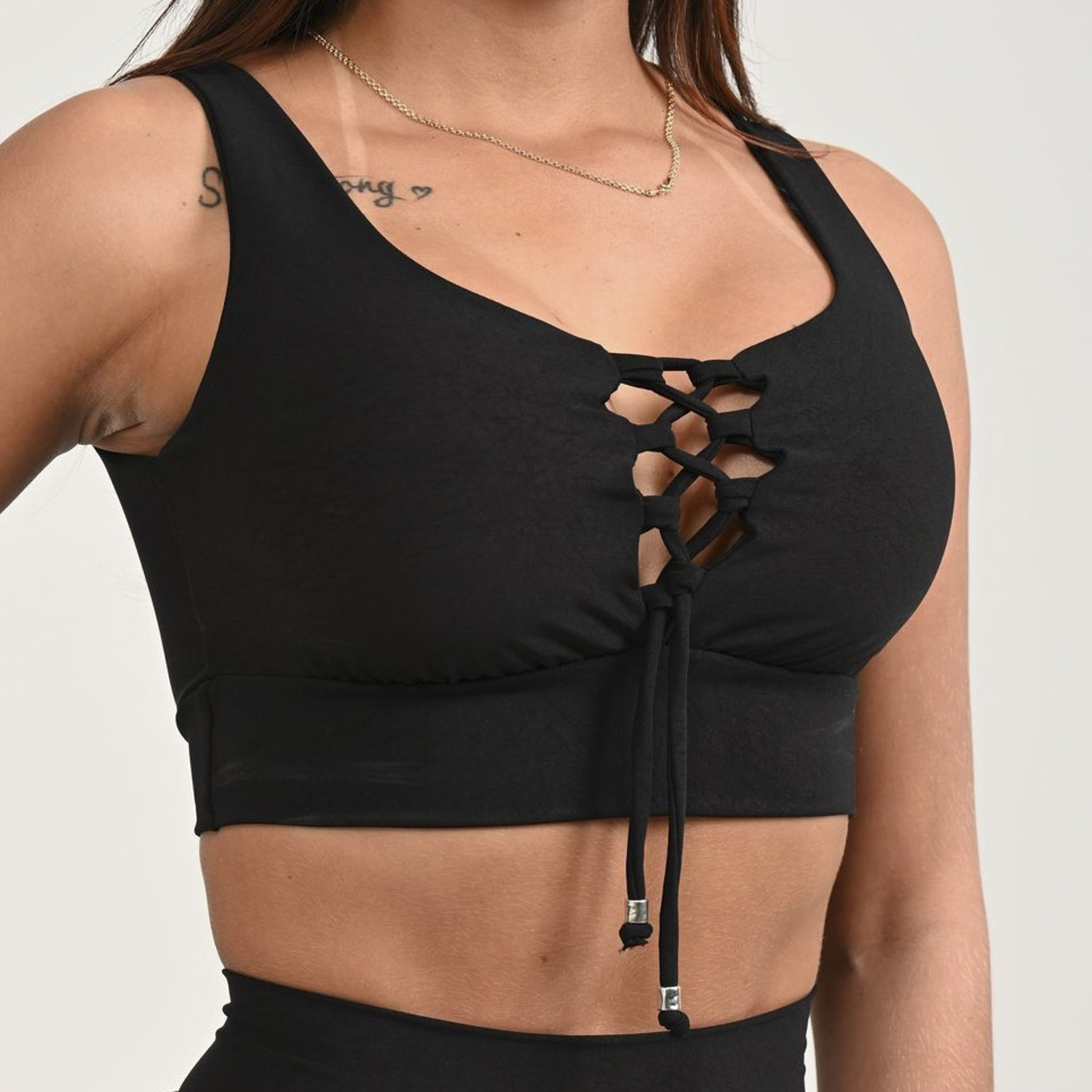 Este top de baile latino para mujer está diseñado para destacar en la pista de salsa, bachata y kizomba. Su escote en V profundo con cordones cruzados al frente aporta sensualidad y un efecto visual impactante, mientras que la espalda abierta con lazo ajustable garantiza un fit perfecto y personalizado, permitiendo máxima libertad de movimiento en cada giro y paso.